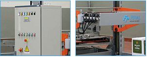The container is stopped inside the conveyor by a mechanical stop, and a centering device ensures its correct positioning. Successively, the picking head picks up the product and places it on the containers bottom. All the machine functions are controlled by PLC, with safety devices on each movement